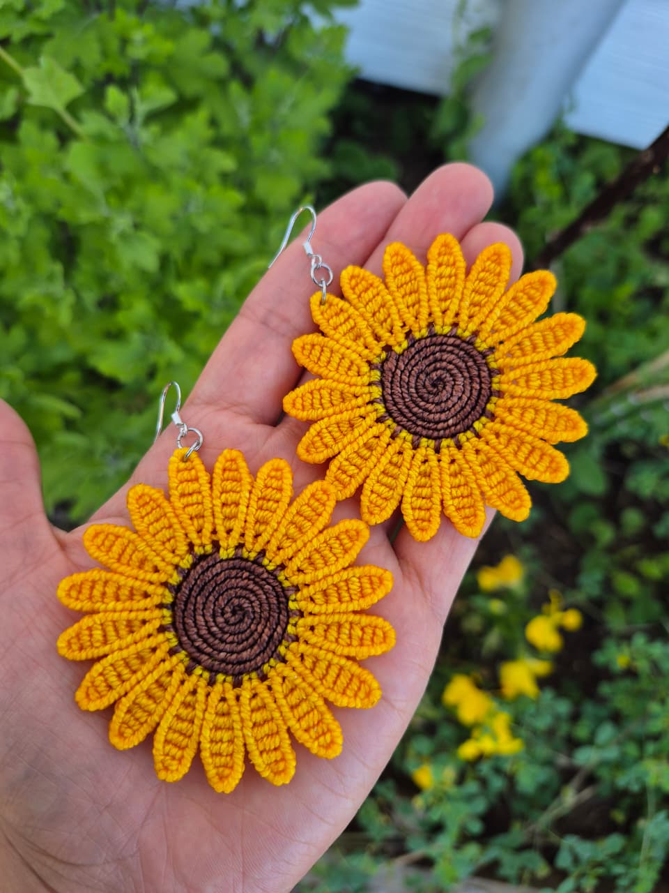 Aritos artesanales que capturan la delicadeza de la flor maravilla a través de la técnica ancestral del macramé. Cada pieza es elaborada manualmente con precisión, combinando hilos naturales con ganchos de plata 925 que garantizan durabilidad y elegancia. El diseño floral aporta un toque bohemio y sofisticado, perfecto para quienes valoran la joyería hecha a mano y los detalles únicos. Ideales para complementar cualquier look con autenticidad y estilo artesanal.