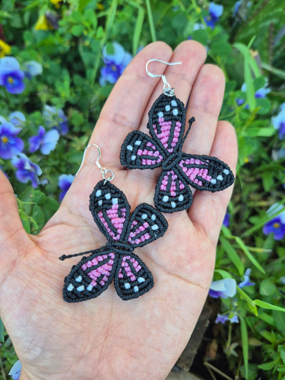 Aretes artesanales que capturan la delicadeza de la naturaleza. Cada pieza presenta un diseño de mariposa elaborado en macramé con cuidadosa precisión, disponible en una paleta de colores que complementa cualquier estilo. Los ganchos de plata 925 garantizan durabilidad y un acabado refinado. Confeccionados a mano, estos aretes combinan técnica tradicional con elegancia contemporánea, perfectos para quien aprecia lo hecho con dedicación y autenticidad.