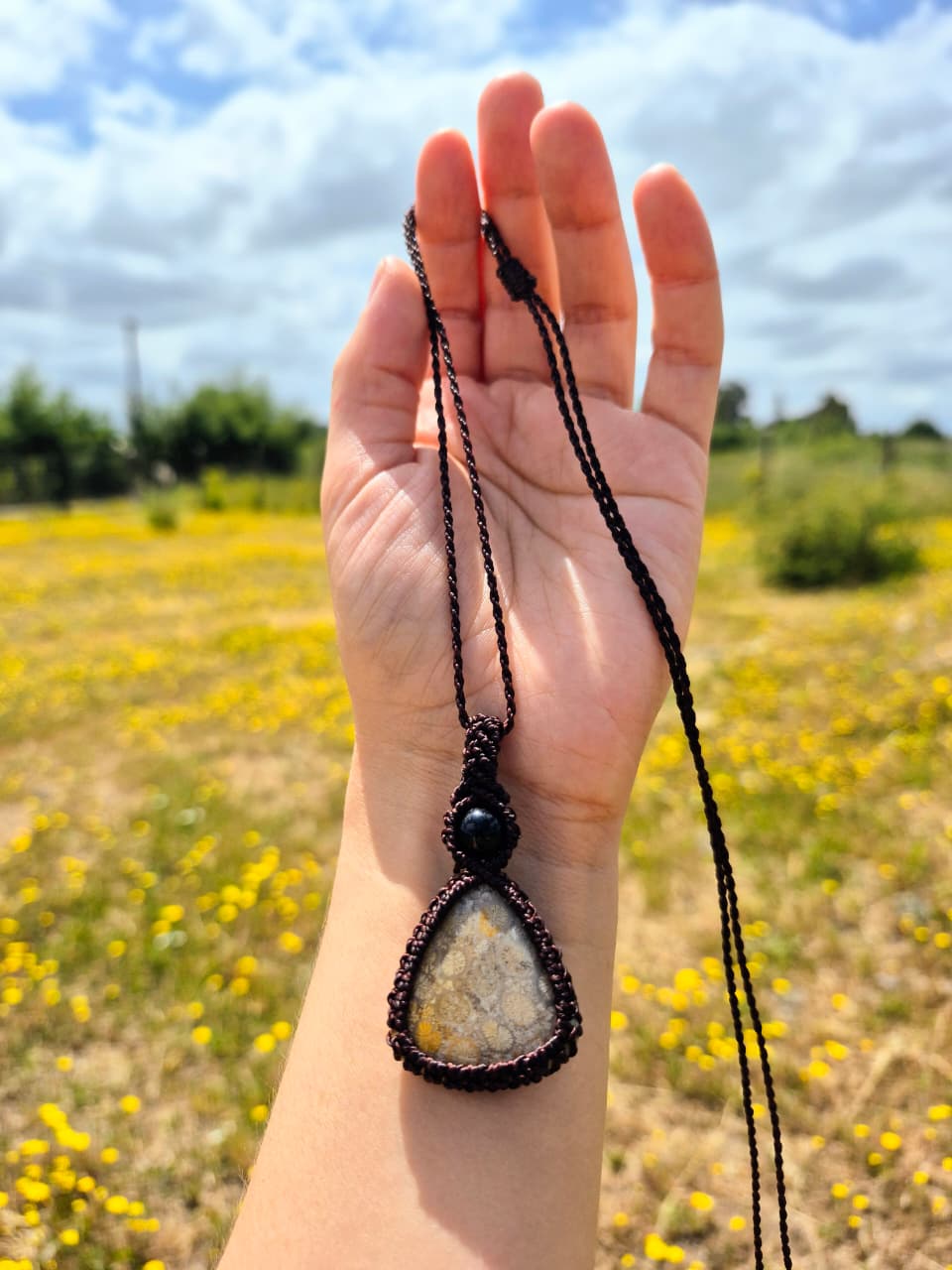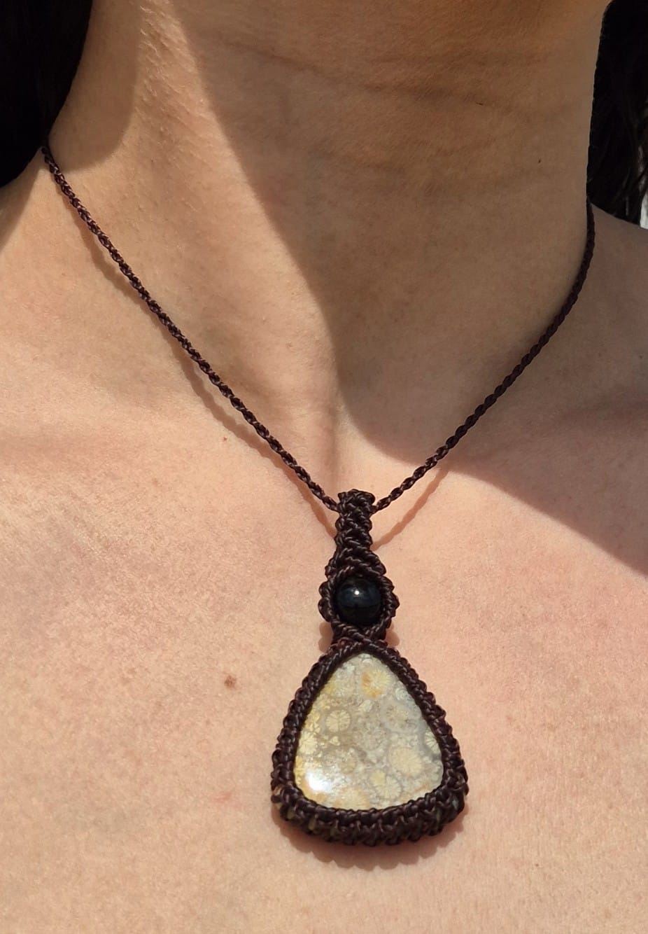 Collar de macramé piedra coral fósil