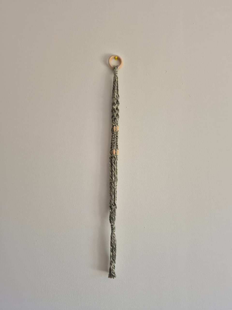 Cuelga para plantas en macramé que combina elegancia artesanal con funcionalidad. Elaborado en tonos verdes naturales, este accesorio tejido a mano realza la belleza de tus plantas mientras añade textura y carácter a cualquier espacio. Perfecto para crear un rincón verde sofisticado en tu hogar, oficina o jardín interior. Su diseño versátil se adapta a diferentes estilos decorativos, transformando plantas colgantes en piezas de arte vivo que generan una atmósfera serena y acogedora.