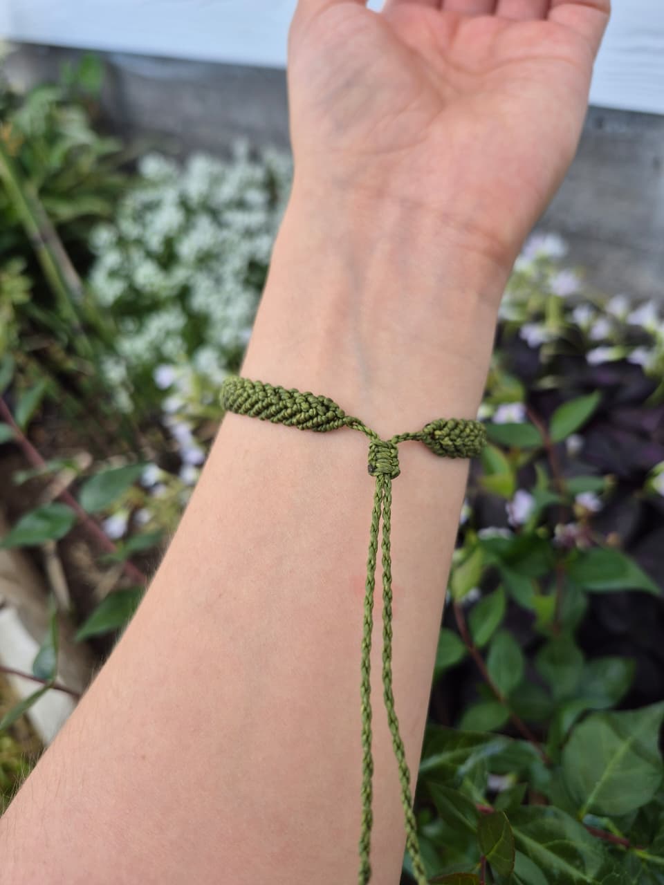 Pulsera artesanal de macramé en tonos verdes, adornada con una piedra de lapislázuli auténtica que aporta elegancia y profundidad. Diseño Neo con ajuste regulable que se adapta a cualquier muñeca, permitiendo un uso versátil y cómodo. Cada pieza es elaborada a mano con técnicas tradicionales, garantizando unicidad y calidad en los detalles. Ideal para quienes buscan accesorios con carácter bohemio y sofisticado que combinen con cualquier estilo personal.