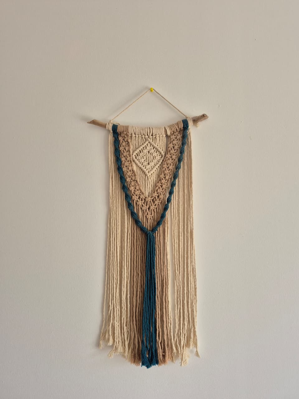 Telar decorativo de macramé tejido a mano con un diseño exclusivo que refleja la artesanía tradicional. Este tamaño mediano es versátil para cualquier espacio, combinando elegancia natural con texturas cálidas. Cada pieza es única, resultado del trabajo minucioso de nuestros artesanos. Perfecto para decorar paredes, crear ambientes bohemios o como regalo especial para quienes aprecian lo hecho a mano.